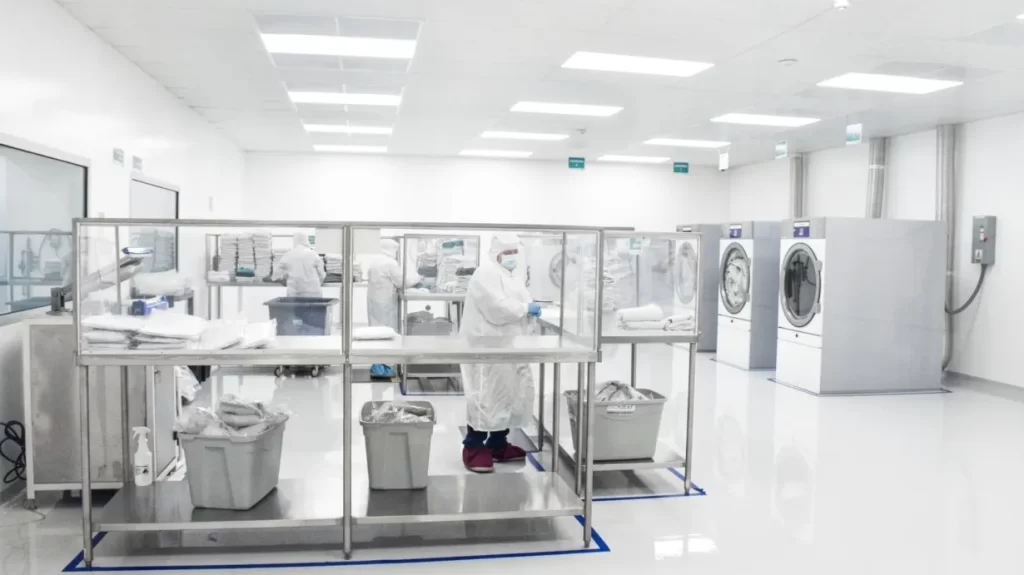 Nuestra área de lavandería en cuarto limpio en tijuana y mexicali ISO clase 8 está diseñada especialmente para industrias que requieren un ambiente controlado, como la fabricación de dispositivos médicos, aeroespacial y semiconductores, en las ciudades de Tijuana, Mexicali y Hermosillo.